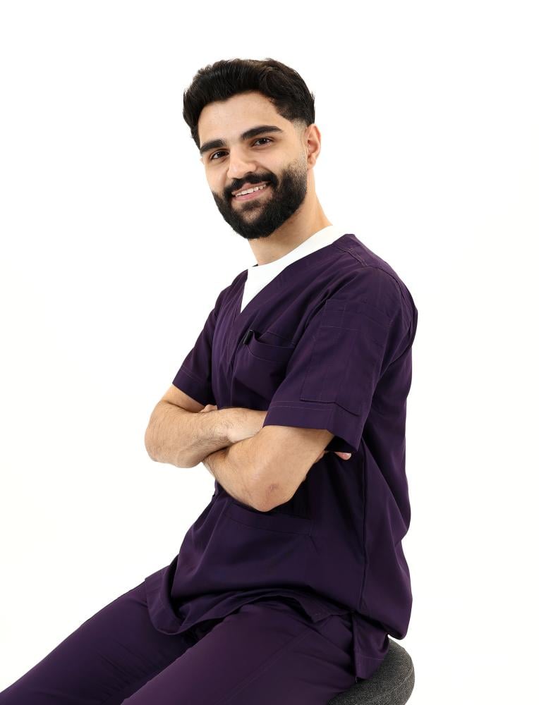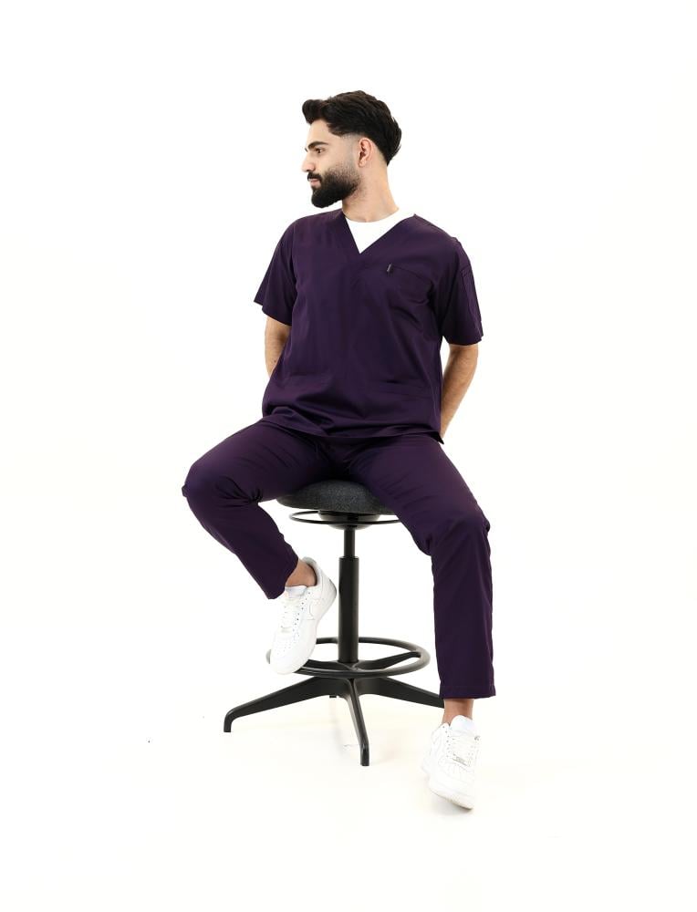 تميّز بإطلالة طبية راقية مع سكراب بنفسجي غامق من ELEGANCE. تصميم عملي وأنيق، بخامة ناعمة ومطاطية تمنحك الراحة القصوى، وجيوب متعددة تتيح لك الحفاظ على أدواتك في متناول اليد – مثالي لبيئات العمل اليومية في العيادات والمستشفيات.
