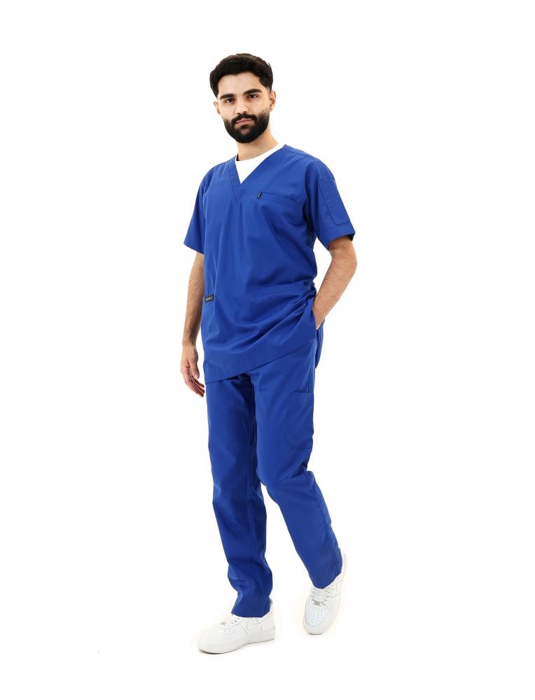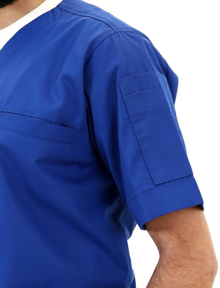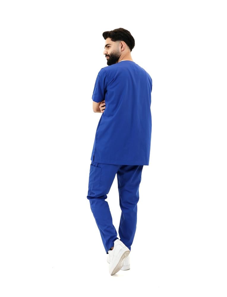 اختر الإطلالة العملية التي تمنحك الراحة والأناقة مسكراب رجالي ازرق ملكي الجذّاب. تصميم مثالي للممارسين الصحيين في السعودية يجمع بين الخفة، العملية، والاحتراف، ليكون خيارك الأمثل في ساعات العمل الطويلة.