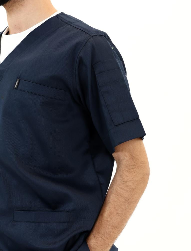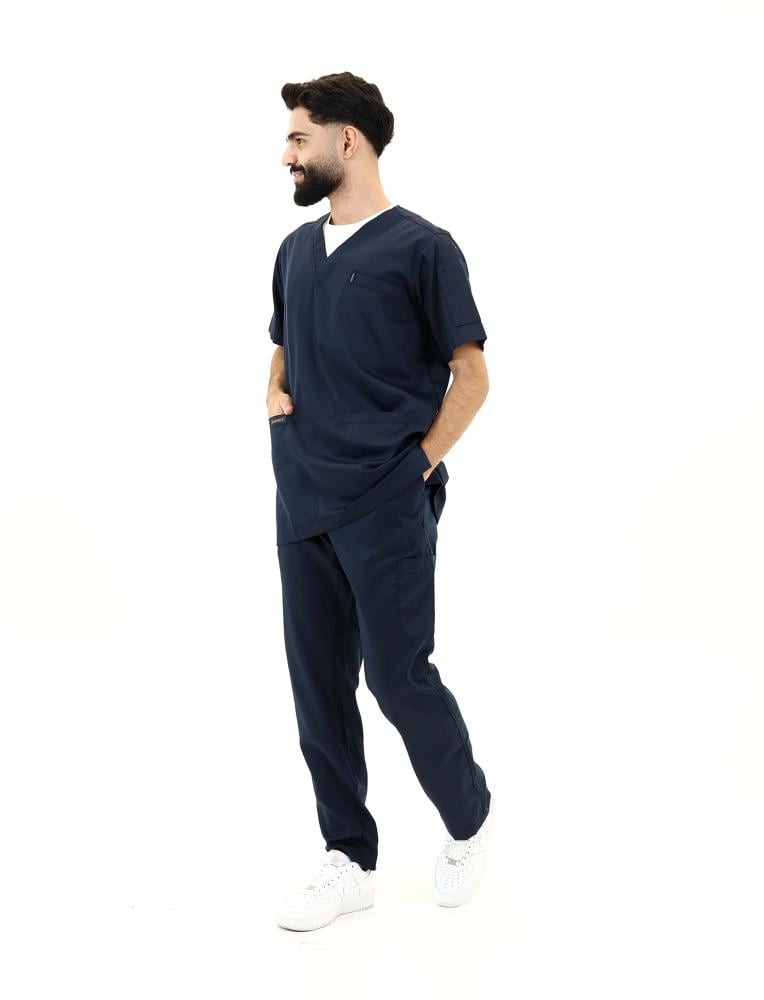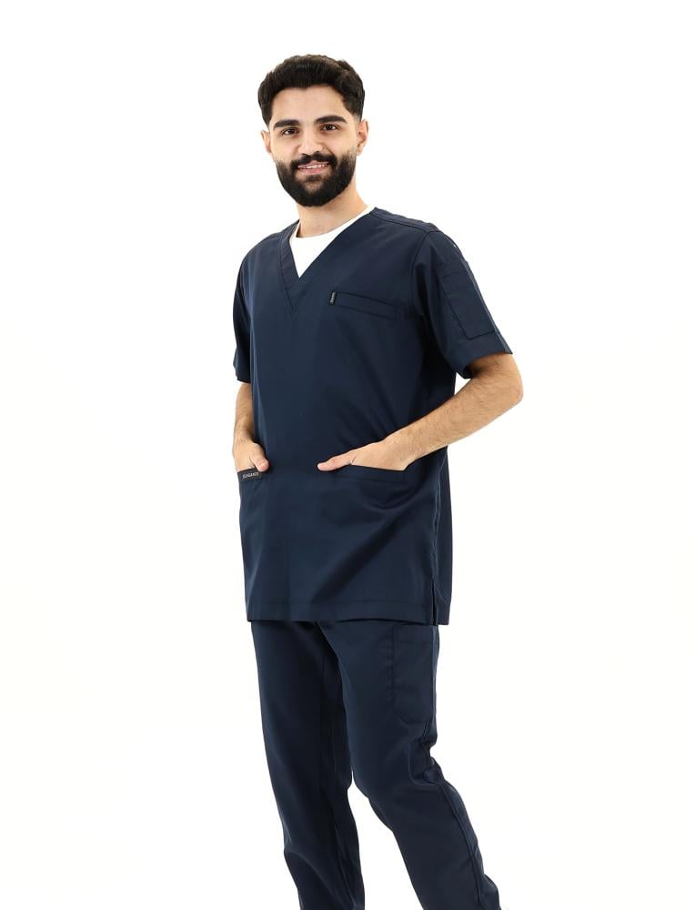 احصل على الإطلالة الطبية المثالية مع سكراب طبي رجالي كحلي داكن من ELEGANCE. تصميم عملي يعكس الاحتراف، وخامة ناعمة تمنحك الراحة في كل حركة. مثالي للكوادر الطبية في السعودية ممن يبحثون عن افضل نوع سكراب طبي يجمع بين الأناقة والعملية.